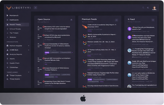 تعمل منصة Liberty91 عبر منظومة متكاملة من وكلاء الذكاء الاصطناعي، يجسدها “هاري” (Harry). يعمل هاري بكفاءة عالية كمحلل مبتدئ (Junior Analyst) متخصص في رصد التهديدات في الوقت الفعلي؛ حيث يقوم فور نشر أي محتوى خام من مئات المصادر السيبرانية بتلخيصه وتحليله، ومن ثم تقديم كافة العناصر ذات الصلة والضرورية لفرقكم الأمنية.