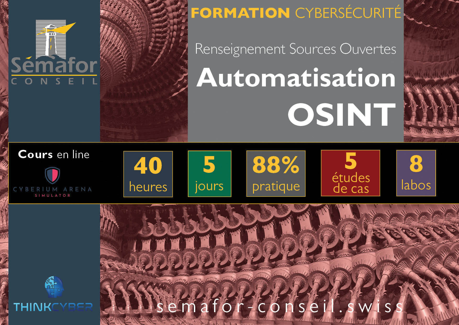 Sémafor Conseil propose une offre globale de formation qui couvre tous les domaines de la cybersécurité afin de former les spécialistes d’aujourd’hui et de demain : la sécurité des réseaux, la sécurité des applications Web, la gestion des menaces, et OSINT (Open Source INTelligence, Renseignement Sources Ouvertes), aussi bien que la série de cours sur les fondamentaux comme l’introduction cybersécurité, cryptographie, l’ingénierie des systèmes Linux et aussi une introduction à Python.